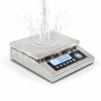 Bascula de aço inoxidável com sensor hermético, resistente a líquidos e poeira. Com superfície lisa para fácil limpeza, oferece visor LCD, bateria recarregável e alta capacidade de até 600 kg. Ideal para ambientes exigentes!